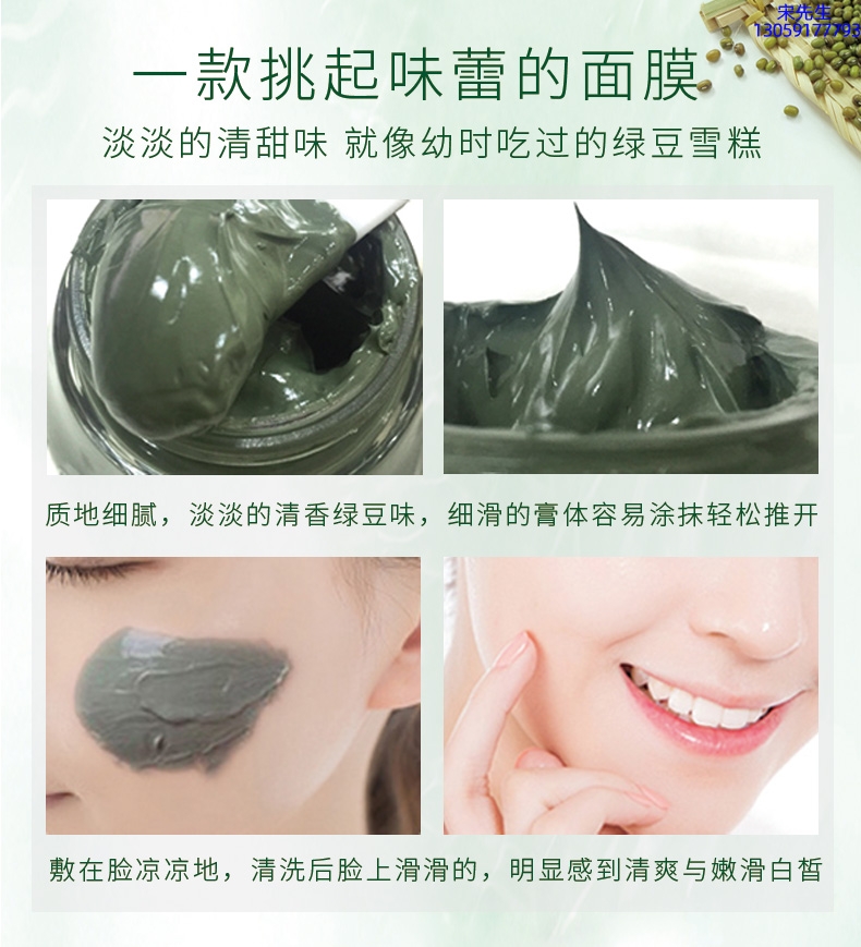 河池市_泥膜深层清洁补水保湿绿豆泥膜 泥膜oem/OEM加工贴牌